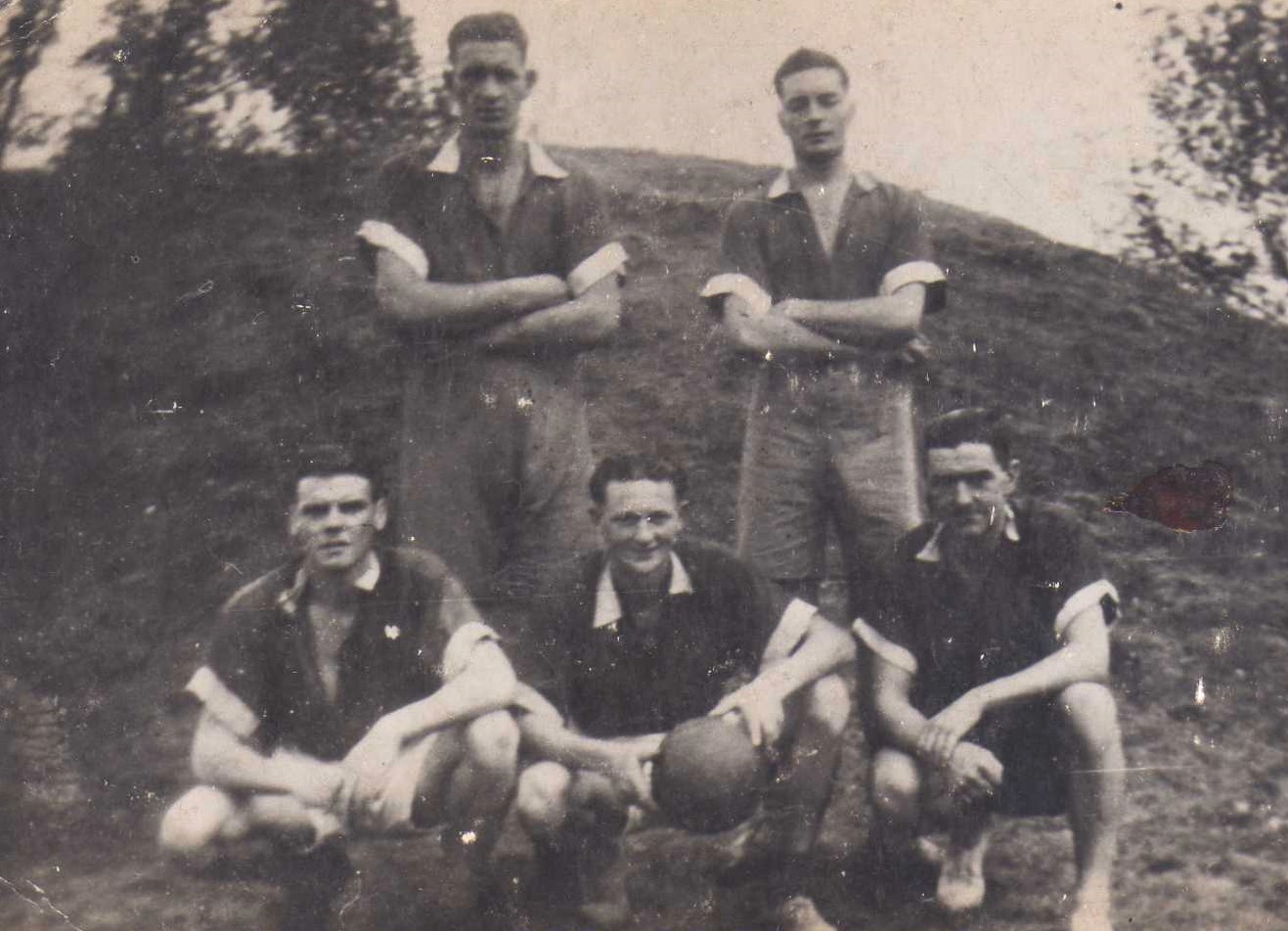 Charles Pickett, front row, centre, in the POW camp. He was probably taken prisoner at the fall pf France and spent the war as a prisoner.